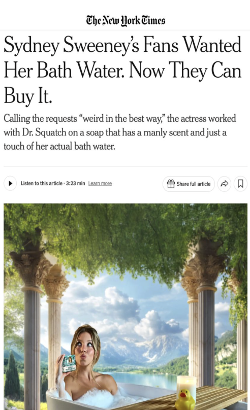 “Sydney Sweeney Soap” reached top 20 in US eBay searches during launch week. Prices peaked at $3,000. They’ve since settled as 8-35x+ the retail price if you’re interested.